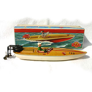 Lancha de los años 40 del fabricante RICO hecha de hojalata litografiada y plástico